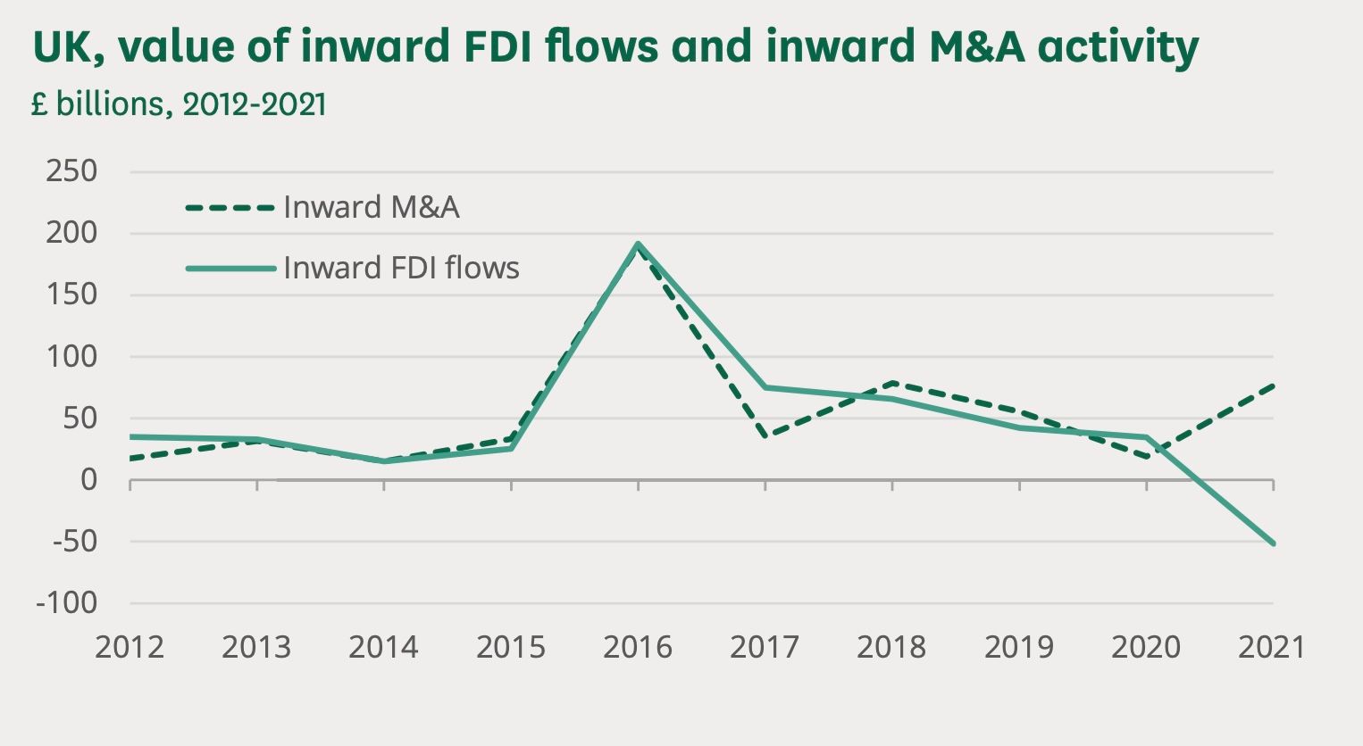 + Recent years have seen a dramatic decline in foreign investment in the UK. Foreign investors no longer find Britain as attractive as it used to be due to an increase in energy costs, recent political turmoil, and Brexit.